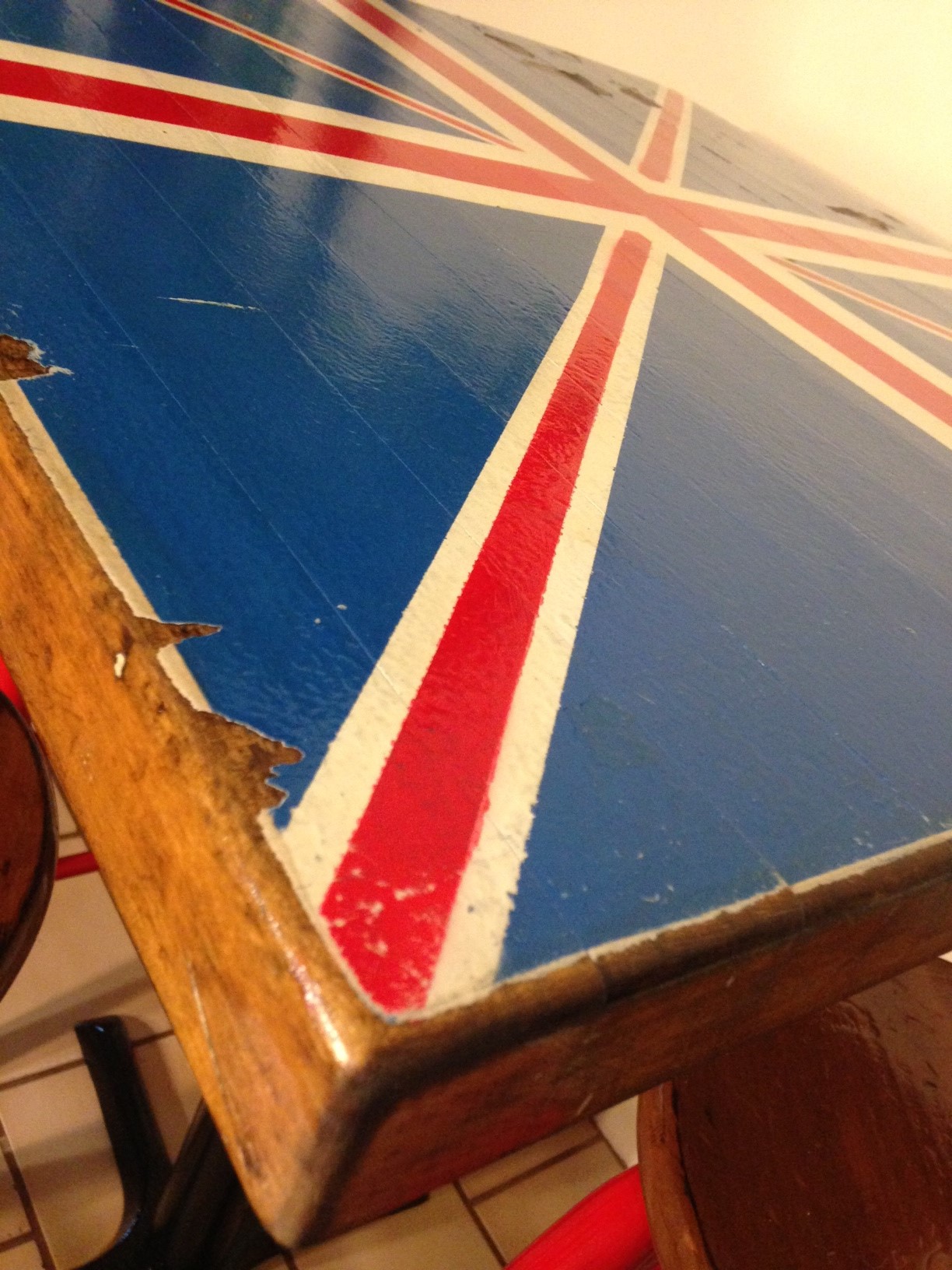 Unique distressed British Flag Pub Table with three stools